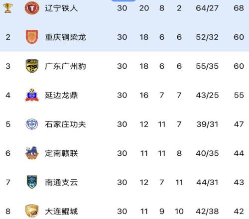 北京时间11月8日,本赛季的中甲联赛最后一轮展开争夺。在收官战之前,还有2个悬念有待揭晓,重庆铜梁龙跟广东广州豹争夺1个冲超资格,广西平果跟深圳青年人都有降级可能。如今中甲迎来大结局,随着铜梁龙2-0冲超,广州豹3-1,广西1-5,中甲最终积分榜出炉了。